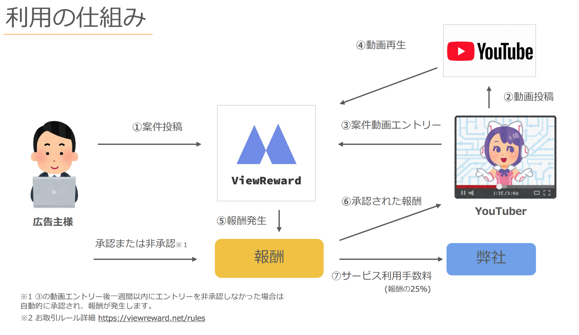 ViewReward上で行われる取引は以下のようになっています。